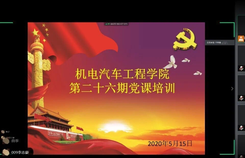 为端正入党积极分子入党动机,5月15日晚,yl9193永利集团以线上方式举行第二十六期党课培训开课仪式。马克思主义学院副教授吴小妮、机电学院组织员勇玲娥、团委老师曲季以及190余名入党积极分子共同参与开班仪式。