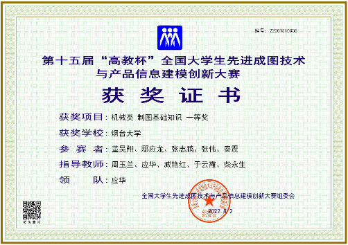 机械类制图基础知识一等奖证书。