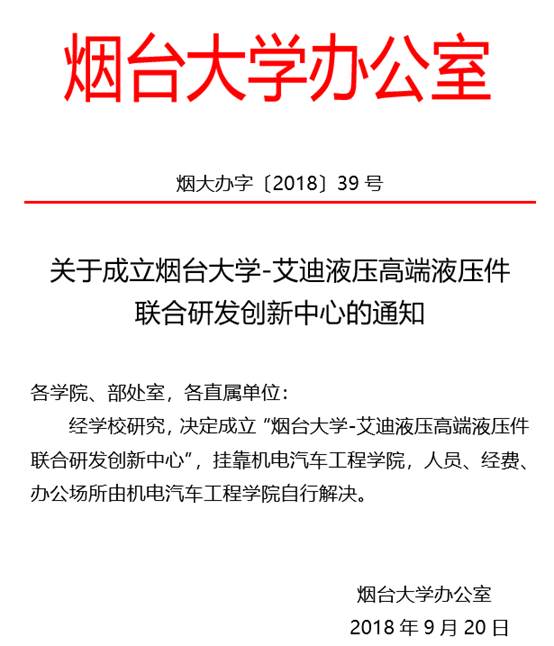 永利集团-艾迪液压高端液压件联合研发创新中心是yl9193永利集团骨干教师与烟台艾迪液压科技有限公司联合成立的高端液压件研发机构。